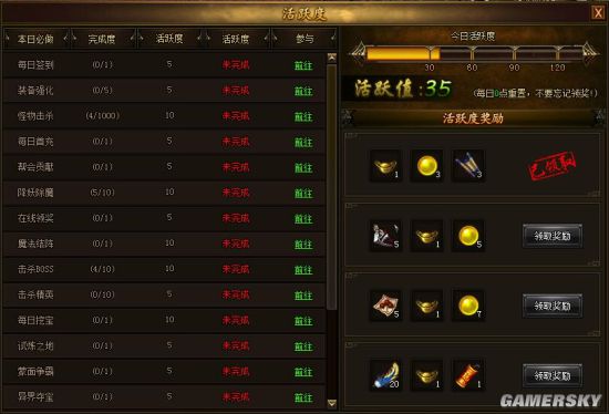 1.当玩家活跃度达到30分,可以领取到500元宝、3颗50万经验丹和3个副本卷轴;
