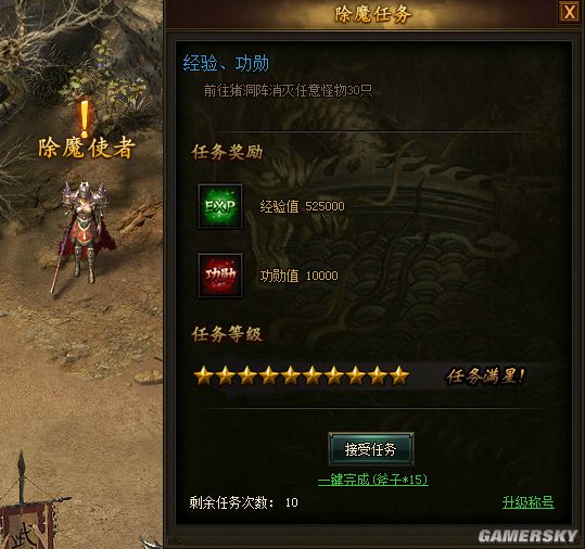 通过除魔使者接取除魔任务,获取经验功勋,还能升级称号哦。