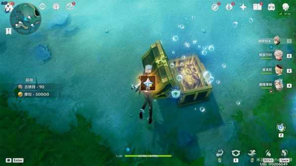 视角右转,朝小地图正东方向游去,可以看到被泡泡包裹的蓝色旋涡。