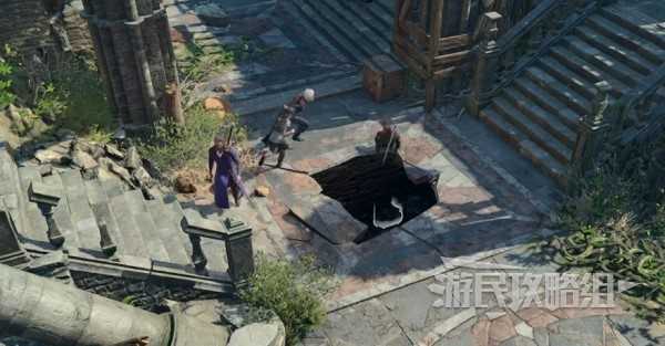 第一个也是最简单的进入阴暗墓穴的方法是【欺瞒】在礼拜堂旁边的寻宝者,包括游说/威吓/与第一个寻宝者小队战斗,如果成功会开启两条分支,包括游说剩余的寻宝者让你进入墓穴,或破坏地面直接进入墓穴。