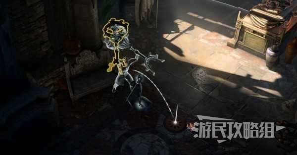 拿到钥匙后打开石棺所在房间对面的门,这里是墓穴最后一部分,会出现随葬的书记员,按下解锁守墓人所在房间的按钮或破坏地上的骷髅即可触发与骷髅书记员的战斗。最好在战斗开始前先搜刮一遍他们身上的武器和装备,这样在战斗中他们就不会携带装备。此外,在击败书记员时建议先将队员分开,让一名角色随时消灭分散在区域外围的书记员。