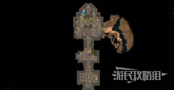 前往礼拜堂如下图所示的位置用盗贼工具撬开活板门,进入阴暗墓穴的河流洞窟区域,在进入守墓人所在石棺的房间之前需要完成与骷髅的战斗。