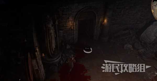 遇到寻宝者后,前往上锁的门处,点燃门旁边的蜡烛即可开启大门,进入阴暗墓穴。