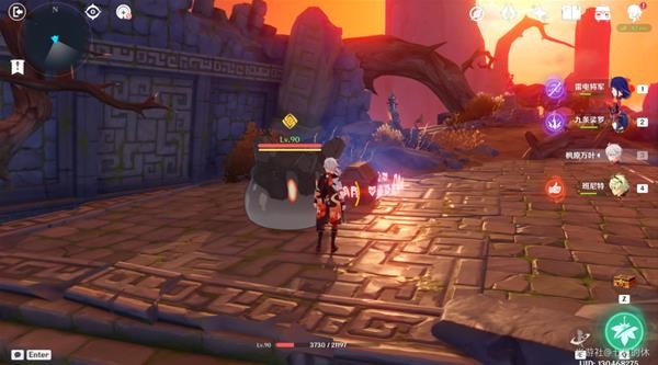 建议携带钟离/岩主+万叶+温度,可以逃课!火元素角色解谜!