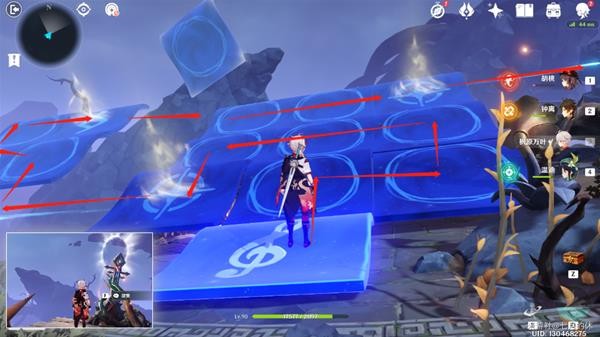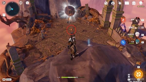13.喇叭机关再调2下(如图所示),出现加速风圈,飞到对面岛上去。(这里有个复活门,可以配置队伍,建议带火元素角色!)