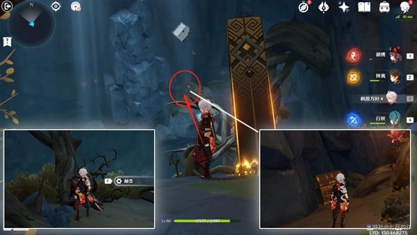 逃课方法:如果带了钟离+温迪+万叶+魈,也可以不用返回,沿着路去对面,直接钟离垫脚,温迪万叶二段跳,魈空中连续用e,能过去。没有魈过不去!