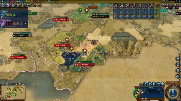 4.初期探路,根据AI的交易界面确定城市数量,然后通过忠诚度线的方向,判断出AI首都所在的大概位置。AI的1 2分通常来说不会太远,数4-6的格子就能比较好的确定。