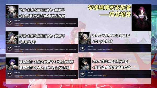 BUFF3,云璃+托帕/巡猎三月七+知更鸟+藿藿/玲可。敌人被击破后云璃出伤会更慢,因此本期更推荐双C阵容。