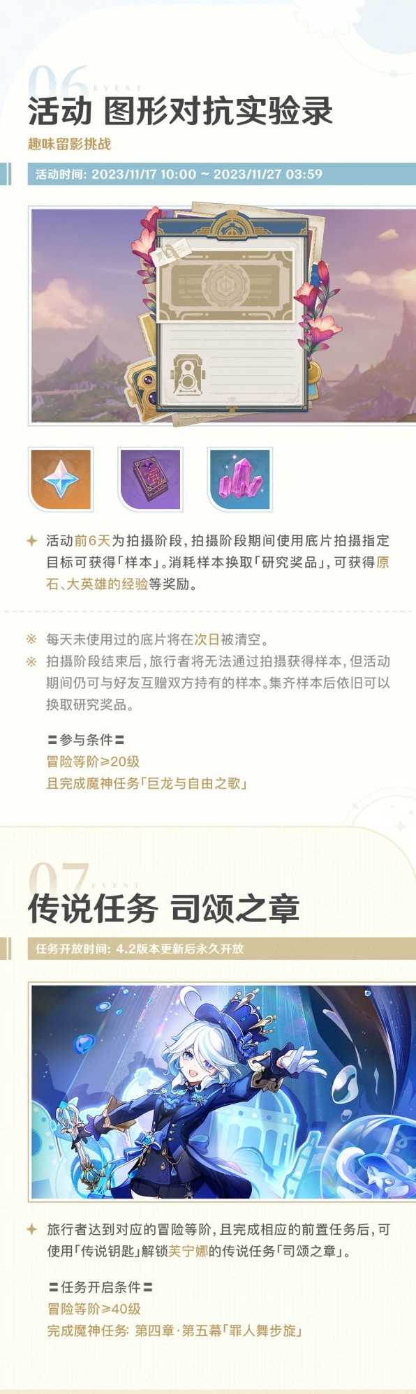 正文 《原神》4.2版本一期活动一览「必看」 游戏小达人 /2025-01-27 10:16:53 /44 浏览量 0127 《原神》4.2版本上半部分将会开启大量的活动,想要了解具体有哪些活动玩法的玩家请看下面“原神”带来的《原神》4.2版本一期活动一览,希望能够帮助大家。 夜来一饮尽千钟,今日醒来依旧老。 -- 展开阅读全文 --