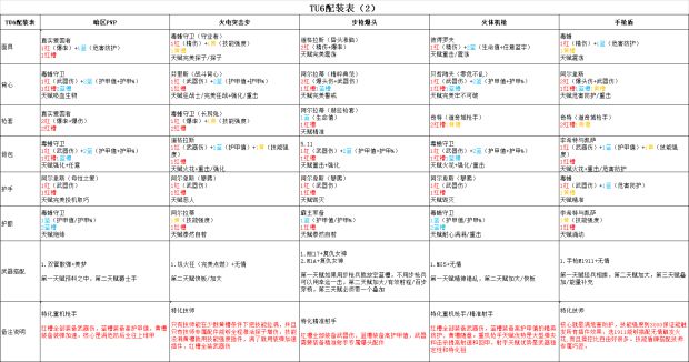 TU6配装比TU5活很多,一套装备在核心不变的前提下,其他都有大致替代品。记录的原则就是泛用性广,输出合格又有一定的治愈防护能力。