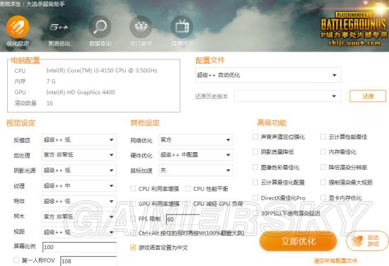 《绝地求生大逃生》画面设置步骤大家如何觉得繁琐的话,用软件一键优化也是不错的选择,今天小编带来“bay暗夜”分享的《绝地求生大逃生》画面一键优化设置教程,下面我们一起来看吧。