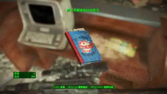 15、在干岩谷插旗房顶尸体旁桌子上,叫极限可乐,小心不要使用炸裂枪,会没的。