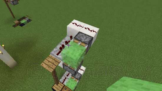 如果你还想上去,你就重复摆步骤3的电路,然后再往上5个栅栏,打掉最下面的栅栏,再盖上步骤三