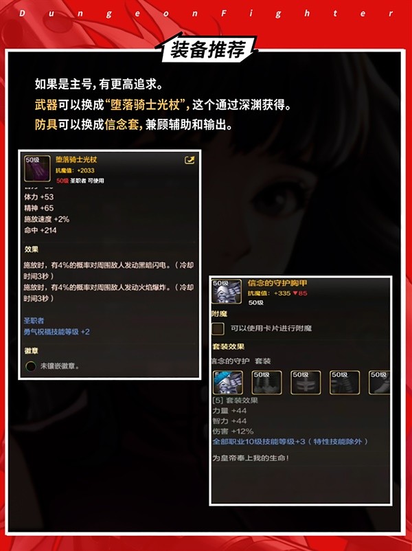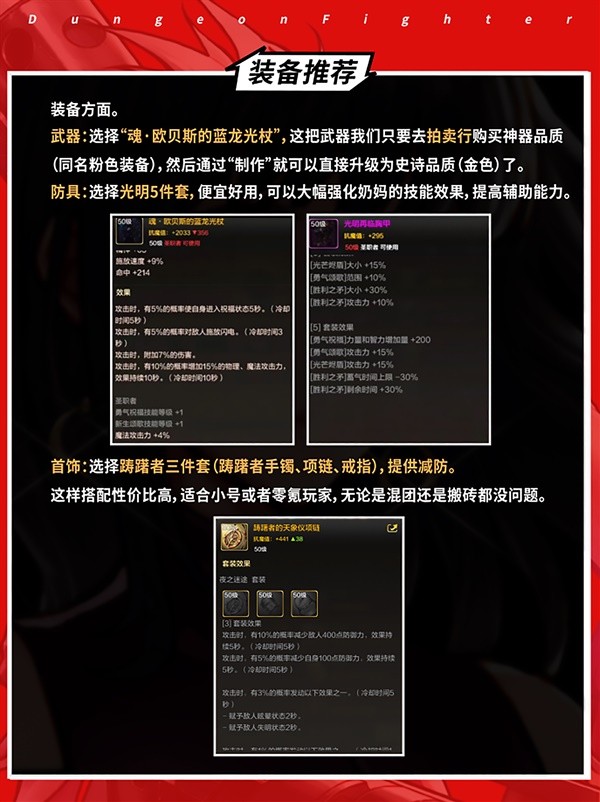 《地下城与勇士手游(DNF手游)》圣职者是游戏中的奶妈职业,其技能机制非常全面,那么圣职者应该怎么打造呢?下面请看由“脸叔鸽鸽”分享的《地下城与勇士手游(DNF手游)》圣职者打造攻略,希望可以帮助到大家。