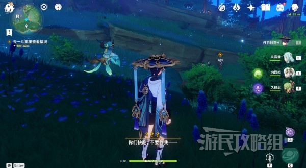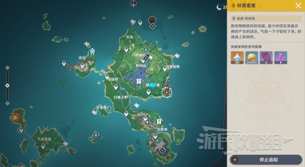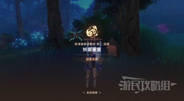 活动第三天,完成第一天内容后会触发传说任务秋津森夜试胆会其二【妖雾重重】。如果没有自动跟踪的话可以按V打开任务界面手动追踪。传送至稻妻的镇守之森传送点,然后跟随任务指引前往目标位置触发剧情。