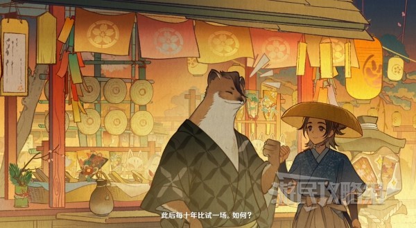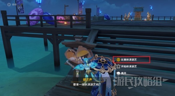 对话结束后,与公告板互动,选择【比赛秋津游艺】。