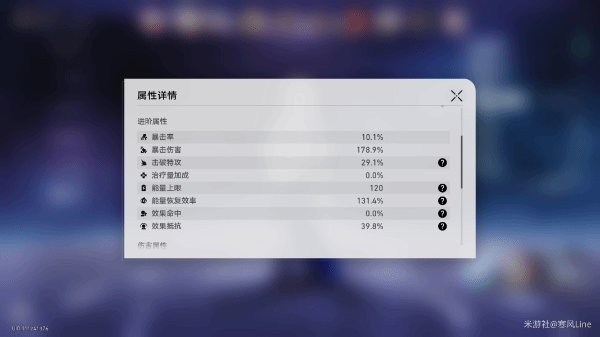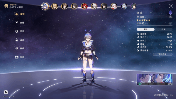 银狼:速度143、暴击率58%、爆伤93%、效果命中42%、击破27.8%