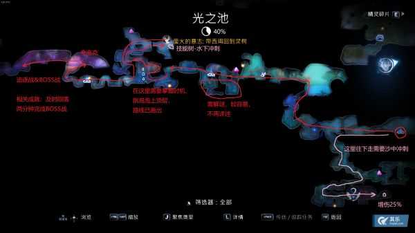 《精灵与萤火意志》的地图是一张完整的大地图,各个区域相互连接,那么知道正确的路线则可以加快玩家的通关时间。下面请看由“紫鸢陌璃殇血梦”带来的《精灵与萤火意志》速通路线指引,一起来看看吧。