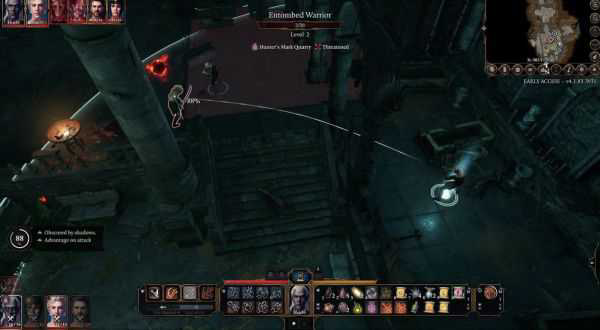 好像前期2级打骨骨,4打7,用了这招后,ai只能看见我的shadowheart(因为我是先射箭/法术,再卡进盲区隐藏),加上其余三人超强输出。shadowheart只扣了3 hp就完局了。