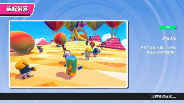 本地图为传送带赛道,在传送带上需要躲避飞来的水果和滚动的横木,横木只会在中间传送带出现,尽量在赛道两边传送带向上前进比较安全。