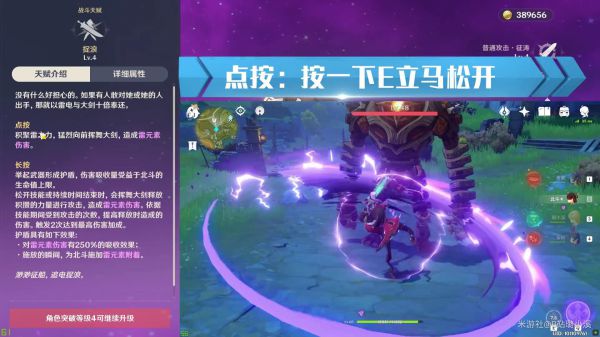 对周围的敌人造成雷元素伤害和触发雷兽之盾