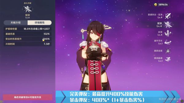 总结:以上的四种弹反方法是北斗精髓所在,都可以触发最高伤害加成,也是北斗主要伤害来源,UP主命名为完美弹反。弹反触发400%伤害加成是可以暴击的。暴击弹反伤害=400%*(1+暴击伤害加成%)