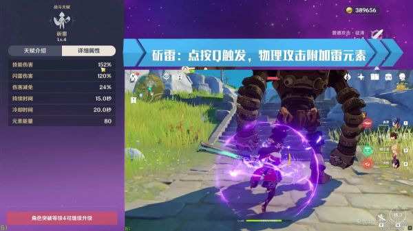 积聚雷力,猛烈向前挥舞大剑,造成雷元素伤害。