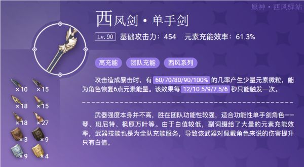 主C角色缺少充能时就可以让队伍中的功能性单手剑角色佩戴该武器,但需要注意的是武器技能在未说明的情况下,在后台基本是无法触发武器技能的,该武器也是如此。