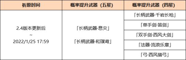 *PS:其中「长柄武器·息灾」「长柄武器·千岩长枪」为限定。