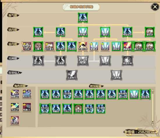 葵花丹方神泣丹,不挂符吃加4万参悟,挂了符一颗22W,我半个小时练了80颗神泣,外加仓库一颗天道神丹,300W参悟直接吃到2600W,道行150一路点技能点到400。