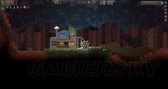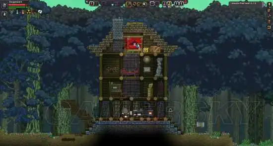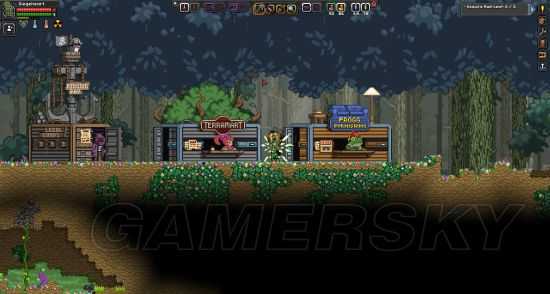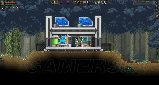 这个地形里的液体是一种材料。里面的箱子是128格的,初期没有解锁制作FU箱子的可以用这个,星球居然自带科技建筑,全是能用的,尤其的太阳能电池!,配合网购机很关键