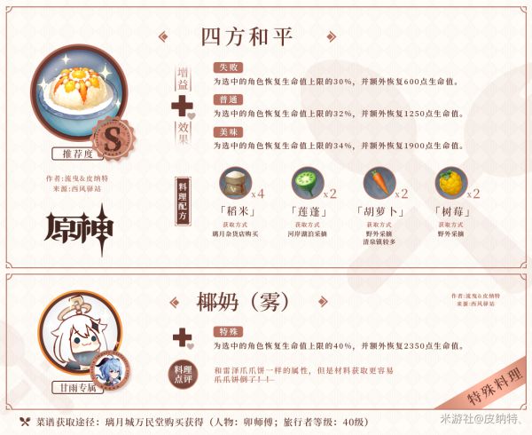 最后这个“椰奶”不是真的哦,因为甘雨暂时还不能获取,所以没办法看到特殊料理的名称。