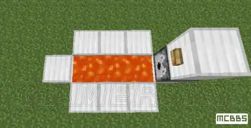需要材料:红石,建筑方块,岩浆,发射器【这里用发射器是因为可以灵活控制岩浆】,按钮