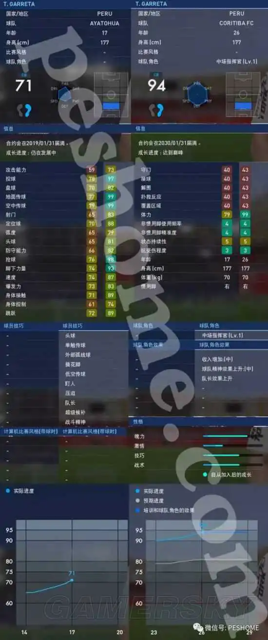 使用评价:加雷塔是pes2017中的架空中卫,初始默认的opr是68,用之前我说过那种用1月开赛的联赛开档的方式可以使他的opr绝对增加2点,极少时候会增加3点。从巅峰期的数据来看,加雷塔有点类似we8—pes2009期间的架空荷兰清道夫博斯,盘控出色,攻防俱佳,传球质量堪比大师级中场核心。实战中加雷塔完全不像博斯那样容易上头,一冲上去就很难回得来,同样的,加雷塔也没有展示出博斯那样类似于贝肯鲍尔一样的后场自由人的进攻天赋,顶多只是在定位球时主罚得比较多一些。加雷塔的防守特点和前国际米兰小个子中卫科尔多巴比较相似,用于对抗,惊人的弹跳弥补高度劣势,盯人很紧,同时保持着充沛的体能。