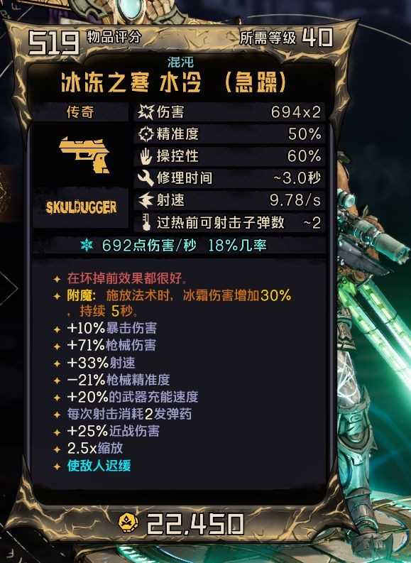 水冷这把手枪我个人认为是全游戏dps最高的枪械。大家不需要像我这种非得混沌的,正常的一把水冷就够乱杀混沌20了。