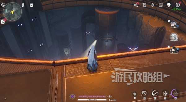 传送完毕后,从信标位置往地图东南方向走,可以看到一个宝箱,站在宝箱位置往左手边下层看可以看到一个门。