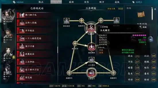 龙啸穿云枪:除龙啸穿云枪外全部棍法练完,棍法修为轻松上200,之所以不考虑龙啸穿云枪因为真的很难拿,有个修炼小技巧,非主战棍法可以直接拿完所有修为点就可以不练,省一些练功时间顺带压压级