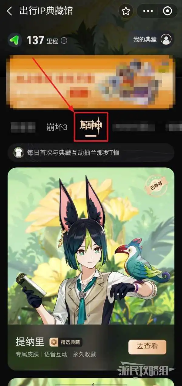 进入IP典藏馆后,横滑IP栏找到并【原神】。然后原神下方的提纳里、阿贝多或可莉典藏皮肤。