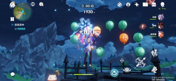 如上图,初始气球较分散,建议瞄准攻击(只要求准确快速命中目标,以求多层叠加次数)