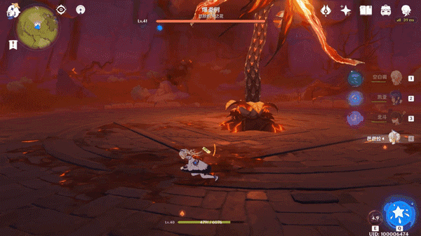核心存在时,爆炎树的抗性大幅增加,我们需要通过击碎核心将其弱化,再进行输出。其中以水元素攻击最为有效,所以推荐携带芭芭拉、行秋、莫娜三位水元素角色其一。风、雷、冰等元素也可击碎核心,物理伤害则不行。此外,若是一段时间内没有击碎头部核心,则核心又会转移至树底部。每次击碎核心后核心位置都会变化。