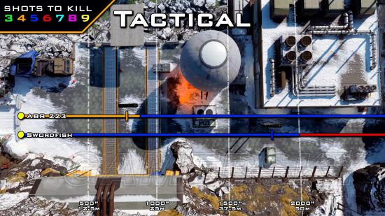 如下图,图里的射程被竖直线段阻断后的就是加了消音的射程,无论是突击步枪,微冲,战术步枪还是手枪,消音的射程缩短最多不过10%,而历代COD里消音的减成通常都是30%起步。所以这些武器都非常值得用消音器。