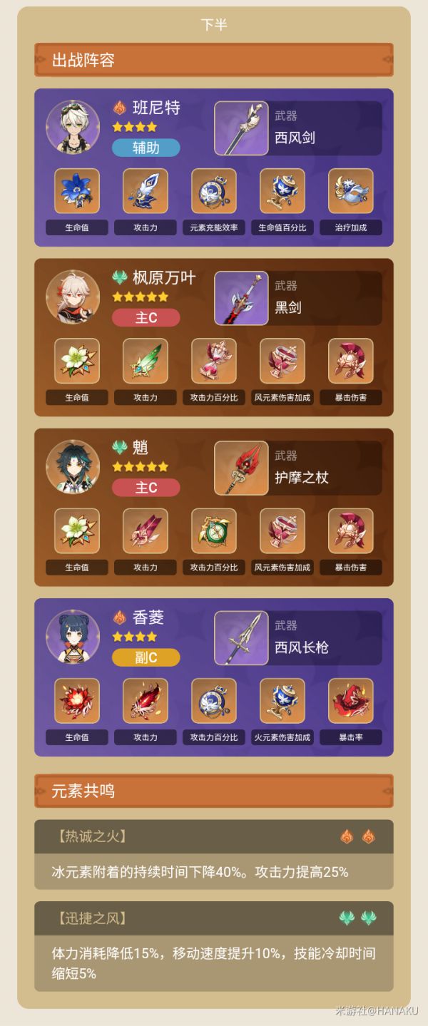 第一波两个讨债人,班尼特走过去直接开大,万叶短e接大,香菱开大,再切万叶短e,魈双e,然后万叶一直短e,穿插一些平a基本就杀了,魈的大招留着第二波用。