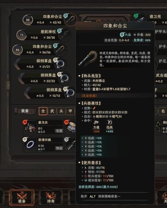 武器:硬玉迅疾对刺(精致迅疾)+软木迅疾长兵(精致迅疾)+软木迅疾长兵(精致迅疾)