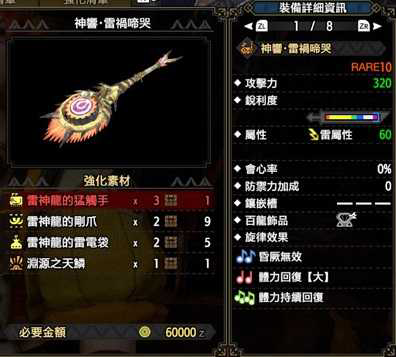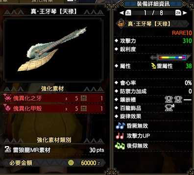 除了洞比较好外全面输给雷神笛,有属性攻击力UP。