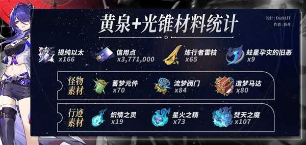 《崩坏星穹铁道》中黄泉即将在2.1版本实装,黄泉及其专武的突破材料是什么呢?下面请看由“祈鸢ya”为大家带来的《崩坏星穹铁道》2.1黄泉及专武养成材料统计,希望各位开拓者能够喜欢。