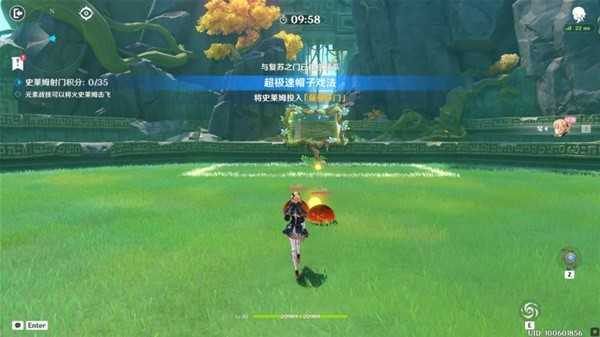 利用琴的元素战技,将史莱姆投入「藤蔓球门」获得积分。