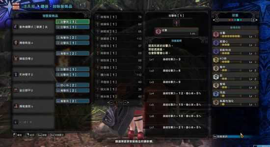 首先我推荐我最喜欢的一套配装,算上弱特80会心,在现在这个全民校服的时期,这套配装算是中规中矩,但是容错率极大,极多的一级孔,比如打尸套龙可以插耐瘴,感觉比较怂可以插3体力等等。