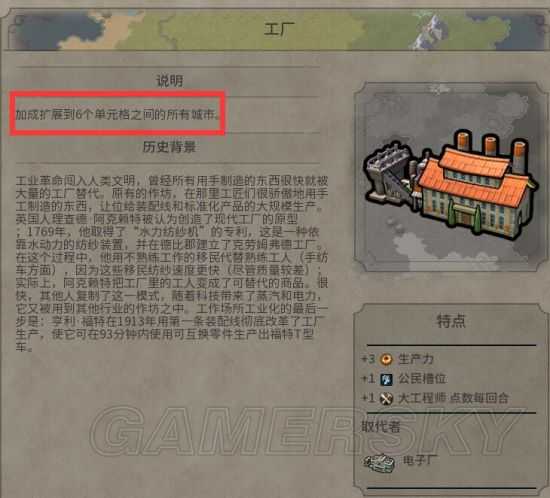 这个工厂和发电厂是对周围6格以内的城市是有加成的。