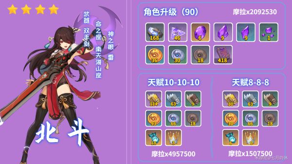 1.北斗拥有不错的雷系角色辅助能力,搭配双雷可以打出不错的输出伤害。