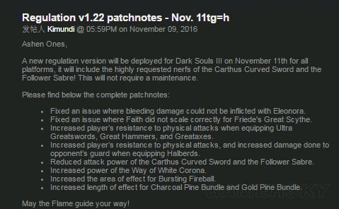 《黑暗之魂3》1.22版更新了哪些内容?这是很多玩家关心的问题,那么下面小编就为大家带来《黑暗之魂3》1.22版改动内容一览,大家喜欢的“酋长刀”卡萨斯曲刃惨遭削弱,更多改动一起看看下面的内容吧!